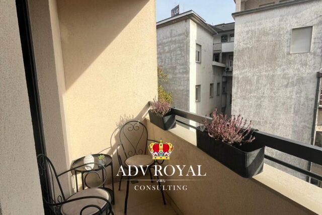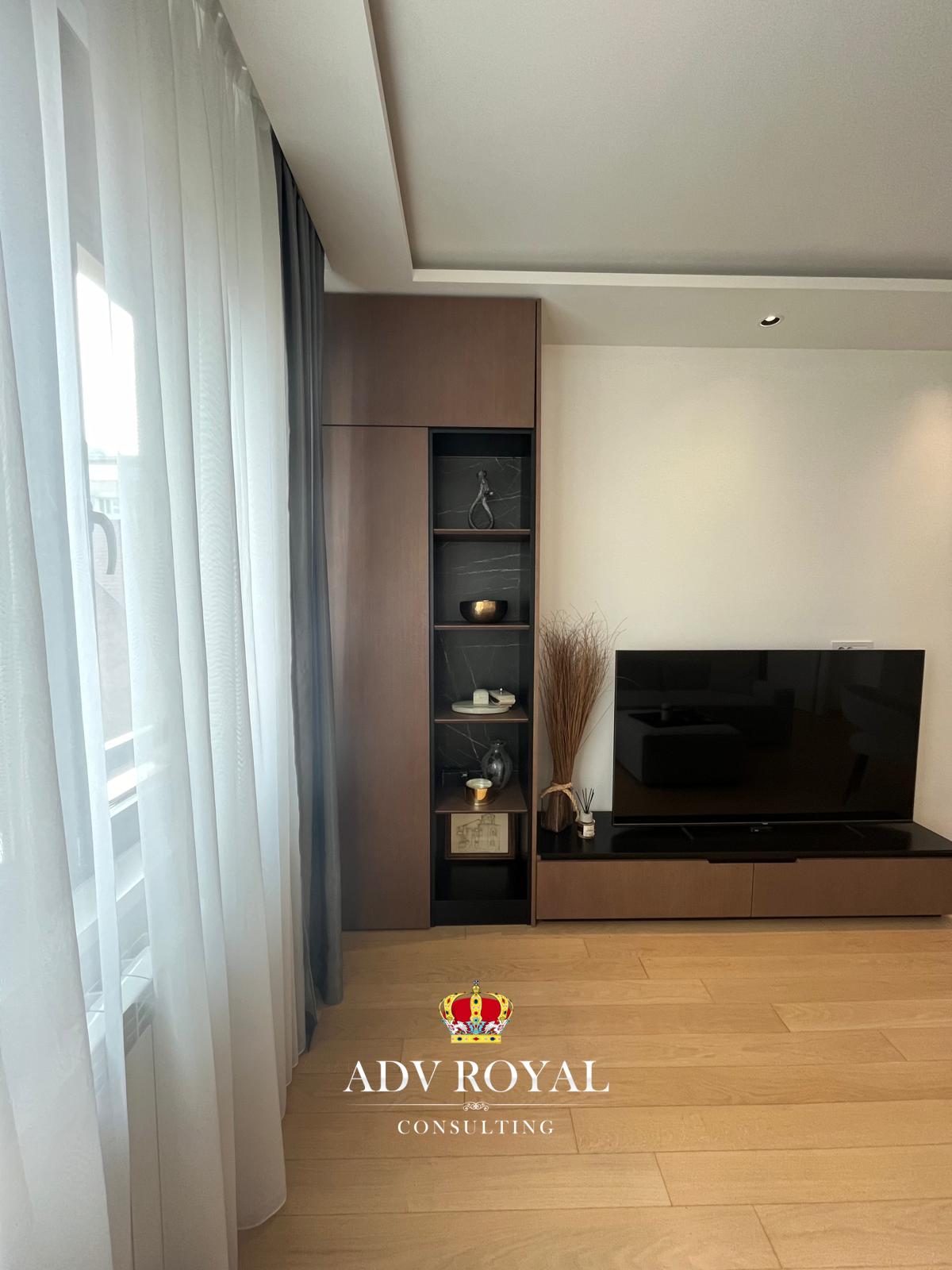 Iznajmljuje se luksuzan,nov, potpuno opremljen stan u samom centru Beograda, sa prelepim pogledom na Hram Svetog Save. Stan je nov i savremeno dizajniran, pružajući maksimalnu udobnost i funkcionalnost. Sastoji se od prostrane dnevne sobe sa trpezarijom, moderne kuhinje, jedne spavaće sobe i kupatila sa tuš kabinom. Iz obe sobe se izlazi na terasu, koja je savršen prostor za uživanje u pogledu na grad i Hram. Grejanje je centralno. Stan je opremljen visokokvalitetnim parketom, dok je kupatilo obloženo elegantnim mermer pločicama, što dodatno doprinosi luksuznom izgledu prostora. Spavaća soba je opremljena velikim, prostranim plakarima koji nude dovoljno prostora za odlaganje velikog broja stvari, pa je savršena za organizovan i uredan život. Zgrada je luksuzna, sa recepcijom, liftom, unutrašnjim stepenicama od mermera, a obezbeđena je alarmnim sistemom, sigurnosnim kamerama i interfonom, što garantuje visok nivo bezbednosti. Stan ima sve potrebne tehničke uređaje, uključujući TV, internet i kablovsku. Cena iznosi 1150 EUR mesečno,uz obavezan depozit u visini rente. Lokacija u centru Beograda čini ovaj stan idealnim mestom za udoban i savremen život – stan za svaku preporuku.