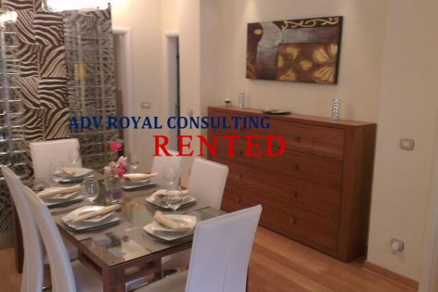 For rent, furnished luxury apartment with three bedrooms with a garage space. The apartment is located in a residential building with an elevator, security. Area of 111m2 where there is a living room with a dining room, terrace, kitchen (all appliances, dishes, natural ventilation), guest toilet, and a sleeping block with three bedrooms, bathroom (jacuzzi bathtub). Central heating, air conditioning, cable, telephone, video surveillance, internet. Rent 1,500 euros with a mandatory deposit in the amount of one month’s rent.